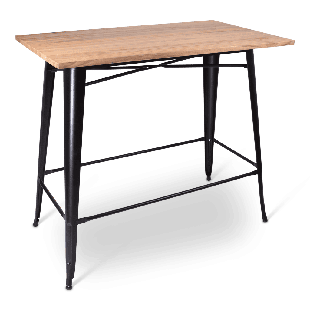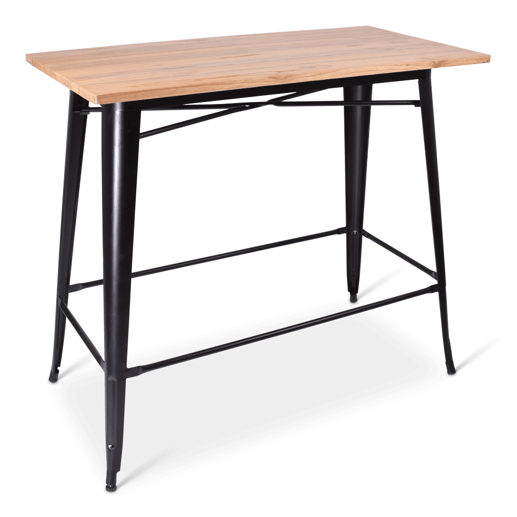 Robuust en met een vintage tintje, dat is de statafel Indus. Met een onderstel van zwart metaal en verschillende tafelbladen past deze statafel op elke locatie.