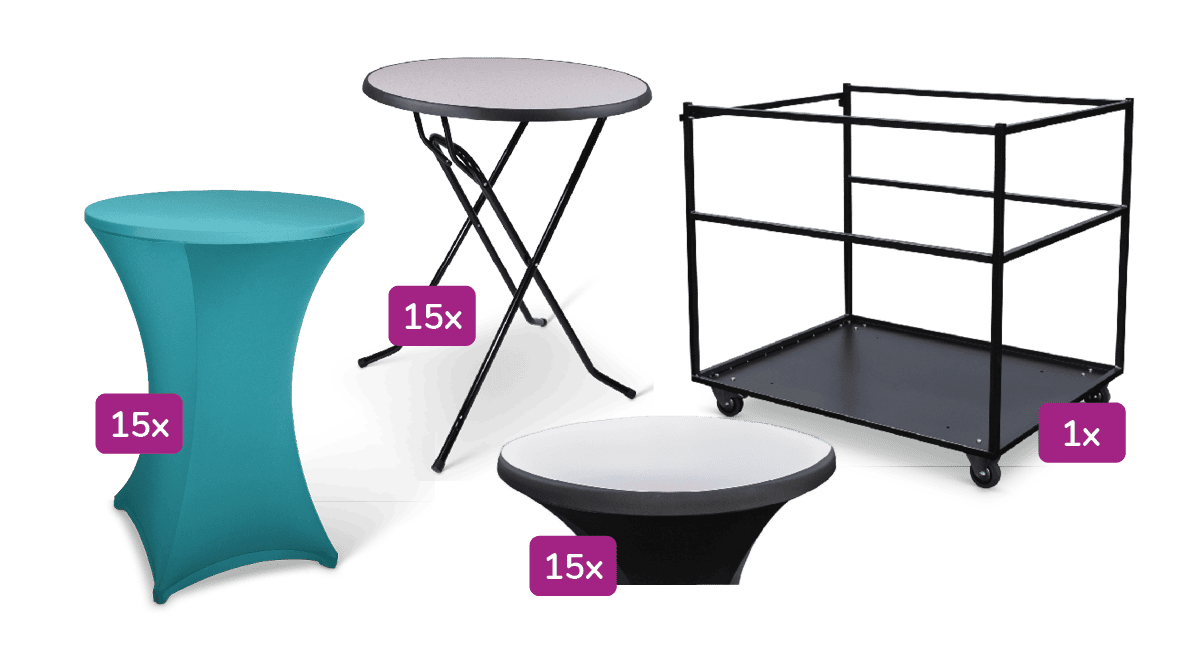 Transportkar groot inclusief statafel Colorado en Stretchrok + Topcover